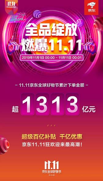 另一家电商巨头,京东公布的数据显示,自11月1日零时至11日零时,京东平台十天累计下单金额突破1313亿元。