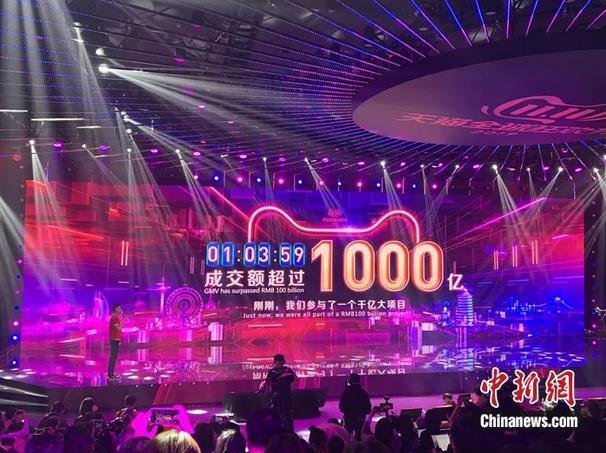 天猫双十一成交额超1000亿元。中新网 吴涛 摄